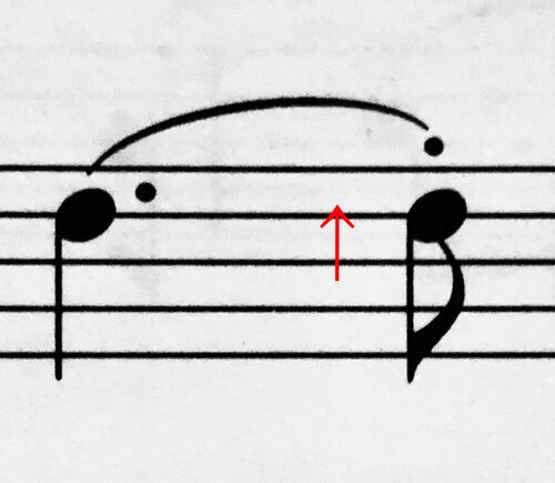 付点の次の音の弾き方です。スタッカートと同じく、ここ↓で次の短い音の準備をする為に弓を弦の上に置きます。 付点で抜いた音の後に、次の実音の頭を出す為です。 中野区・練馬区のヴァイオリン・ヴィオラ教室 ☆講師がいつも一緒に演奏するので、お手本を見…